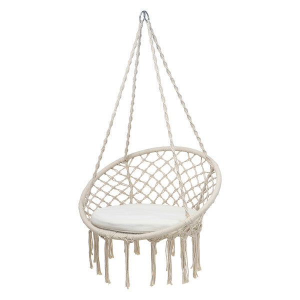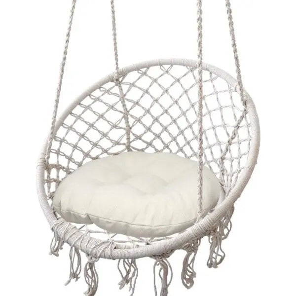 Създайте уютен кът за релакс с висящото гнездо „Макраме“, съчетаващо стил и функционалност. Перфектно за вашия дом, градина, тераса или балкон, това модерно и елегантно решение ще внесе усещане за лукс и комфорт във всяко пространство. Независимо дали четете книга, слушате музика или просто се наслаждавате на момента, висящата люлка ще се превърне в любимото ви място за отдих.